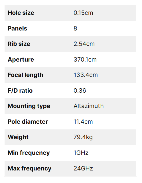 Al centro della rete, il Radiotelescopio di Monzambano è dotato di un’antenna a fuoco primario da 12 piedi e 8 pannelli, montata su un sistema altazimutale. La sua rete in alluminio, con fori da 1,5 mm, imposta la massima frequenza operativa a 24 GHz, mentre la banda di lavoro si estende da 1 a 24 GHz. Questa ampia gamma di frequenze consente l’osservazione di diversi fenomeni, supportando studi dettagliati sulla struttura della nostra galassia e dell’universo.